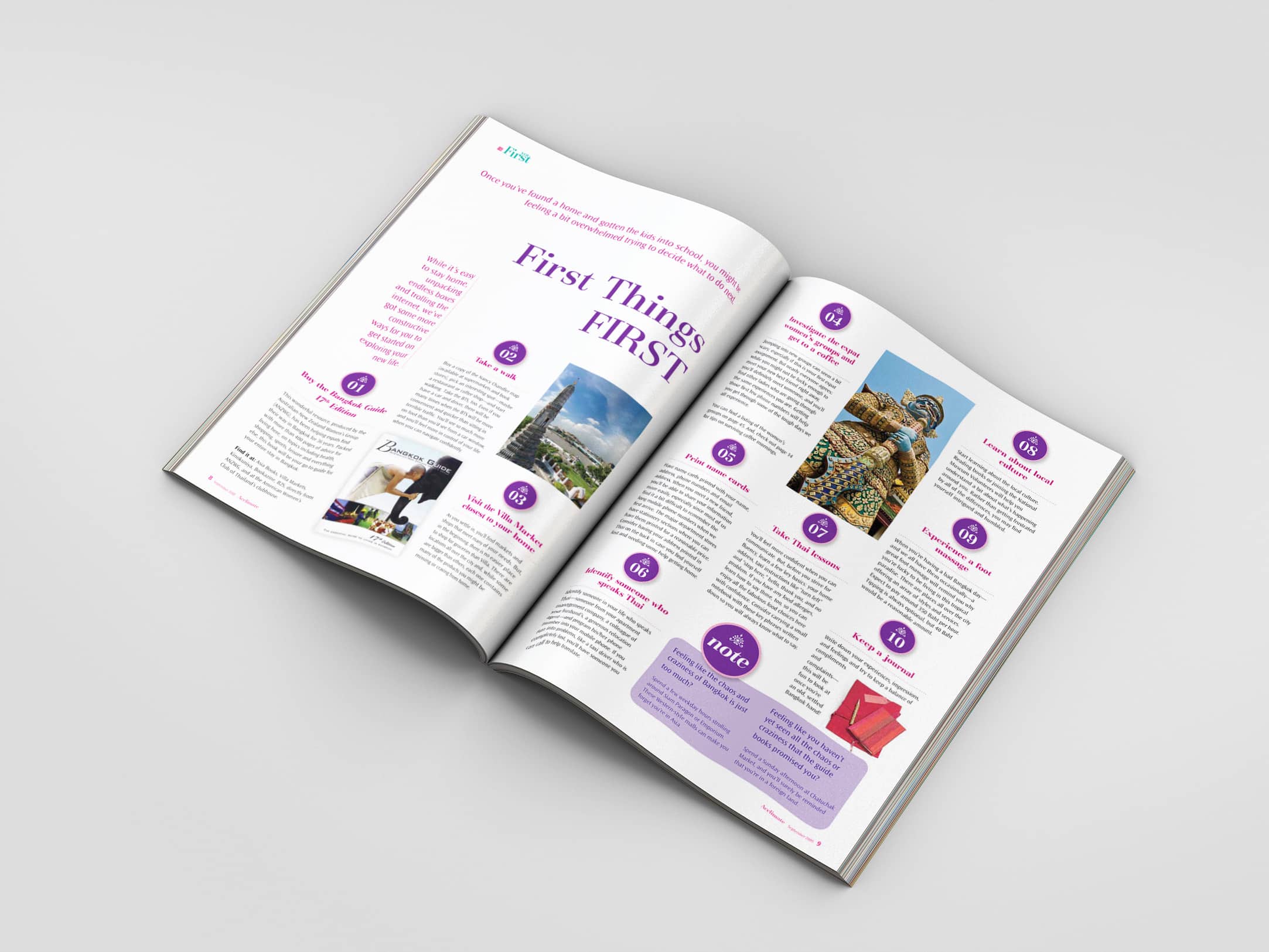 The brief was simple: make it fun and useful. Tracey wanted to create something vibrant, with a wink — a publication that tackled serious issues with warmth and humour, and challenged the tired stereotypes about expat women in Bangkok.